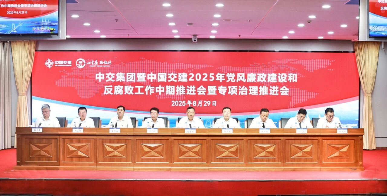 8月29日,中交集團暨中國交建2025年黨風廉政建設和反腐敗工作中期推進會暨專項治理推進會在中交大廈召開。會議以習近平新時代中國特色社會主義思想為指導,深入貫徹中央紀委四次全會精神和國務院國資委黨委重要部署,全面落實公司上半年生產經營工作會議精神,總結今年以來黨風廉政建設和反腐敗工作,分析當前形勢,部署下半年重點任務。公司黨委書記、董事長宋海良出席會議并講話,黨委副書記、董事、總經理張炳南主持會議,黨委副書記劉翔宣貫專項治理和系統整治方案,黨委常委、紀委書記敏珠勒作工作報告。