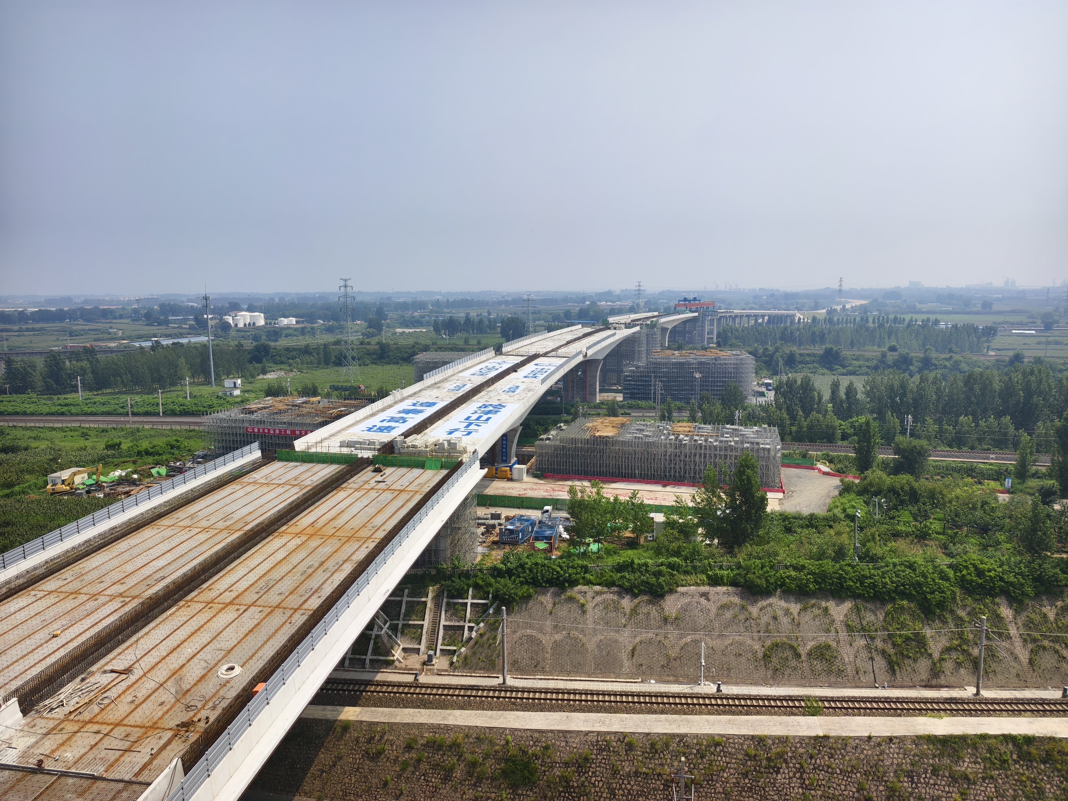 京哈鐵路大橋位于天下第一關——山海關前,是項目的核心控制性工程,大橋全長652米,需上跨京哈高鐵、津山鐵路、龍山聯絡線3條鐵路線共計6股道。為不影響既有鐵路正常行車,保證施工安全,大橋共設計有4個轉體梁,是河北省在建的最大規模轉體工程。4座橋梁總重超4.7萬噸,相當于4.7座艾菲爾鐵塔重量,且橋下平均每4分鐘通過一趟列車,每天約有400趟列車經過,要將4個龐然大物在有限時間窗口內平穩、精確地轉動到位,難度堪比“繡花”。
