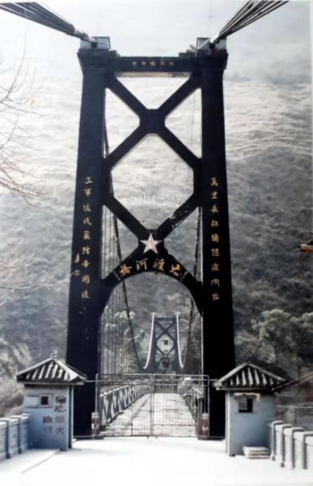 早在1950年,二公局的前輩們就已開始修建康藏公路瀘定縣的大渡河橋,大橋位于紅軍長征時飛奪的瀘定橋上游不遠處。1951年底大橋通車,這是新中國成立后修建的第一座懸索橋。塔身上刻寫著朱德題寫的對聯:“萬里長征猶憶瀘關險,三軍遠戍嚴防帝國侵!”時任西南軍政委員會主席的劉伯承題寫橋名“大渡河橋”。
