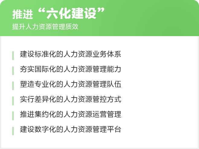 深度融入“以國內大循環為主體、國內國際雙循環相互促進”的新發展格局,以海外人才優先發展推動“業務國際化”向“公司國際化”升級,以人才隊伍國際化水平提升公司國際化管理能力,加快培養造就一支具有全球競爭力的海外人才隊伍。