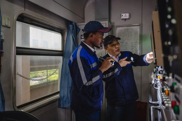 在6平方米的駕駛室內,火車駕駛員蔣立平與他的學員霍勒斯一同協作,往返于蒙內鐵路的沿途站點。蔣立平2018年來到肯尼亞,負責駕駛員培訓、標準化作業監督指導等工作。霍勒斯表示,中國老師的專業培訓讓他受益良多,未來自己也要像師傅一樣為蒙內鐵路培養更多可靠的駕駛員。